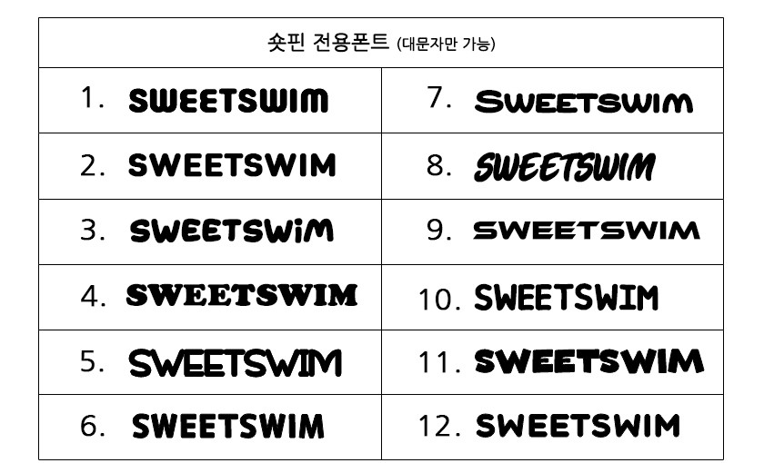 스윗스윔에는 여러 가지 폰트와 이모티콘 그리고 색상도 개별로 선택 가능하다